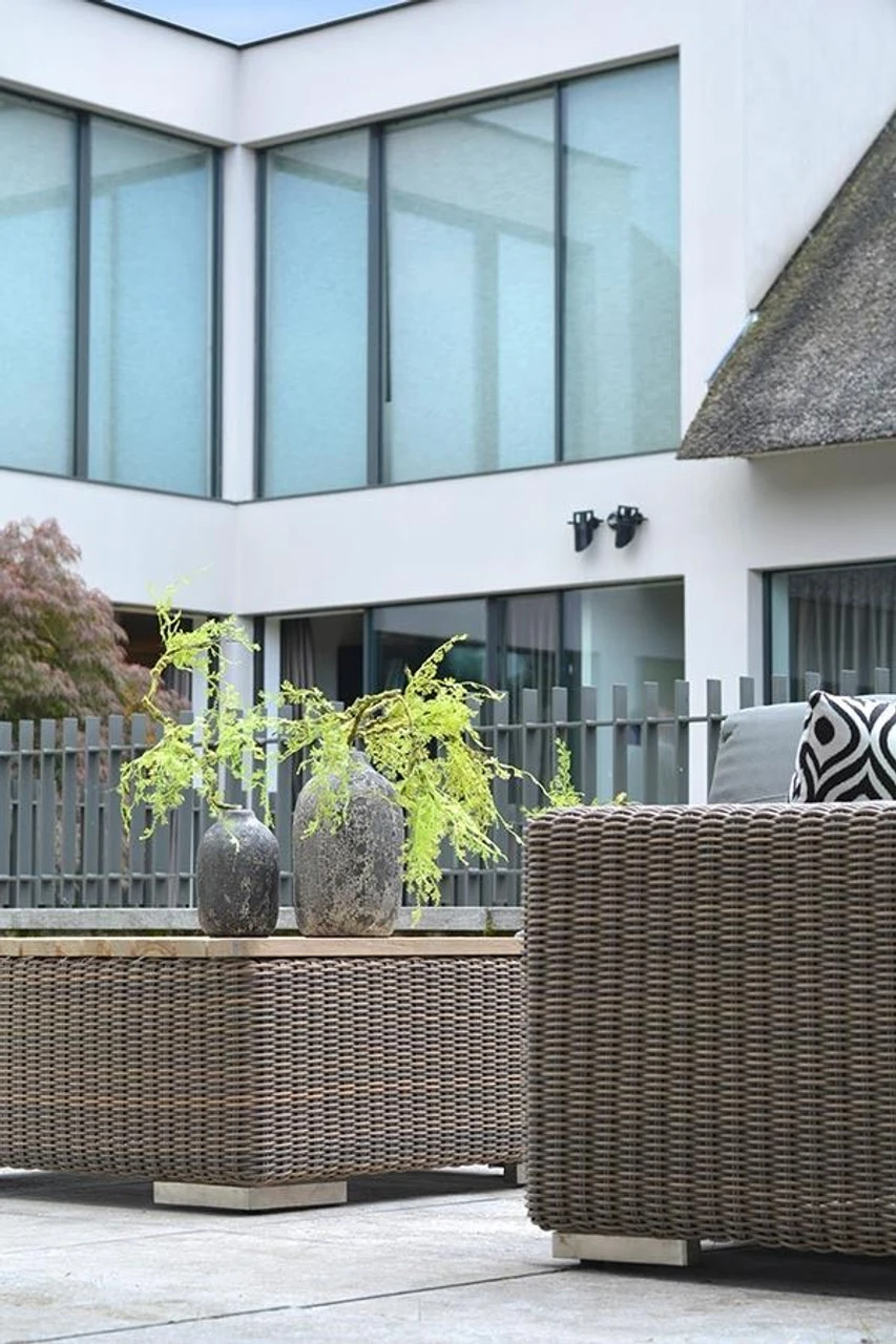 Even the 4 Seasons Outdoor all-weather cushions and pillows have been manufactured to the highest standard to enable them to handle the rain and not perish under the sun’s powerful UV rays. In addition, the Dacron material also ensures the cushions retain their shape. To complement the furniture in the mid-brown Pure wicker, where applicable the pieces come with Surrey Grey cushions.