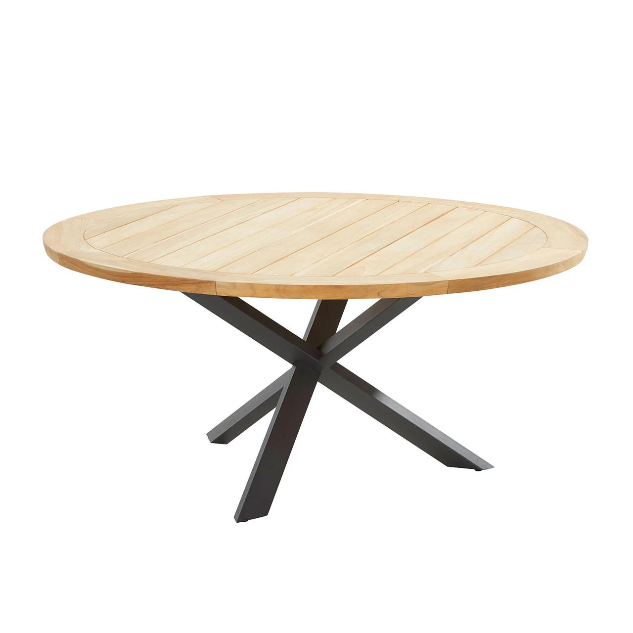 Pour another round. Take a seat together at the round Prado table. The sturdy cross frame and the natural teak table top combine beautifully. Put together with your favourite 4 Seasons Outdoor dining chairs to make your ideal set.