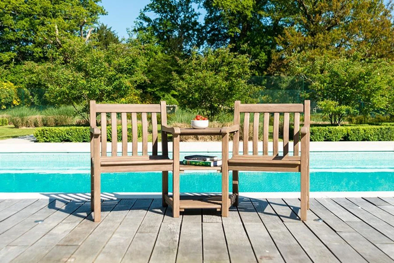 Alexander Rose timber furniture is designed with this in mind and its strength and durability will remain unaffected. Wooden furniture can be treated with Alexander Rose’s specially formulated care products to enhance the natural look of the wood. Alternatively the wood surfaces can be left and will eventually turn an attractive mellow silver grey, and should be occasionally cleaned with soapy water.