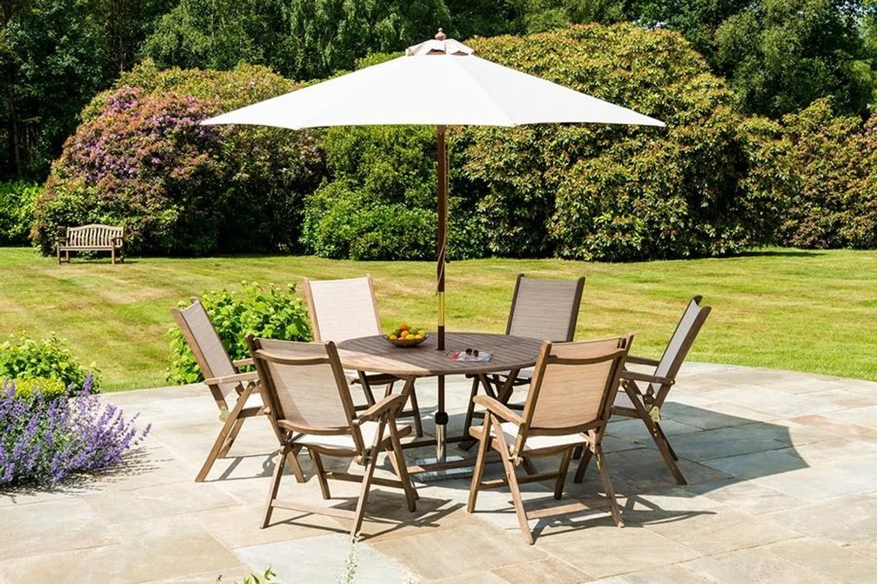 Alexander Rose timber furniture is designed with this in mind and its strength and durability will remain unaffected. Wooden furniture can be treated with Alexander Rose’s specially formulated care products to enhance the natural look of the wood. Alternatively the wood surfaces can be left and will eventually turn an attractive mellow silver grey, and should be occasionally cleaned with soapy water.