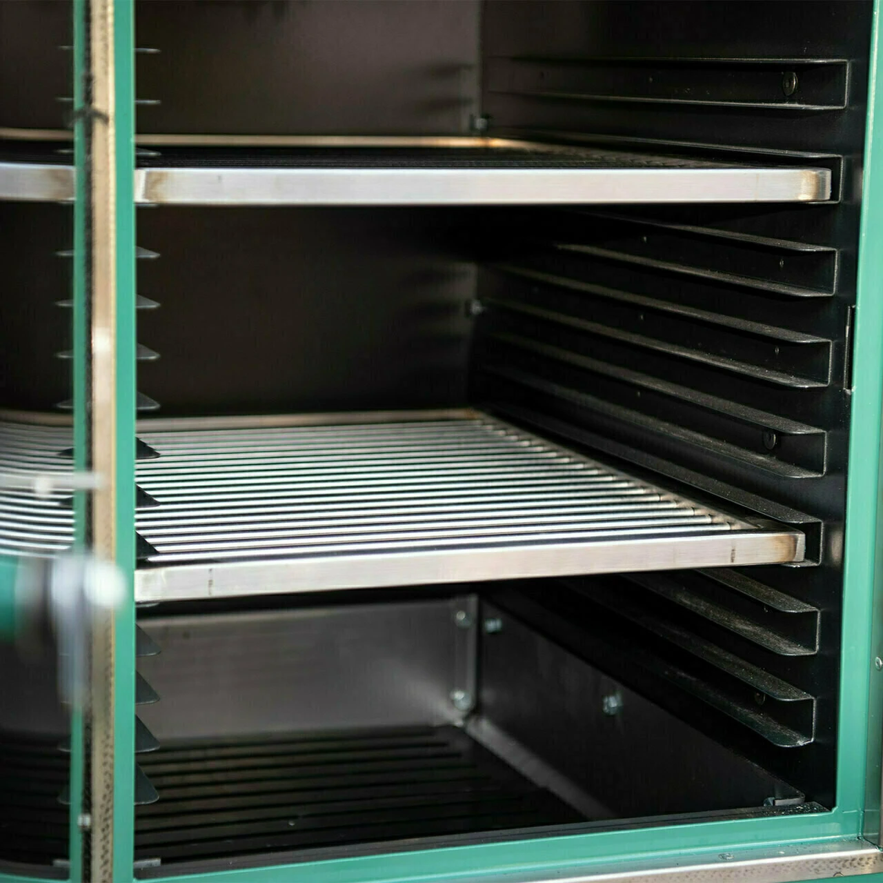 - BIG CAPACITY OVEN. Charlie has 2.5 times the capacity of a domestic oven! The internal oven is 60 cm tall, 60 cm deep, and 44 cm wide. It comes with two professional-grade cooking racks. It has nine cooking rack positions to allow many different cooking options. Cook indirectly (away from the fire) or directly (close to the fire). The oven racks are 50 cm deep and 40 cm wide.