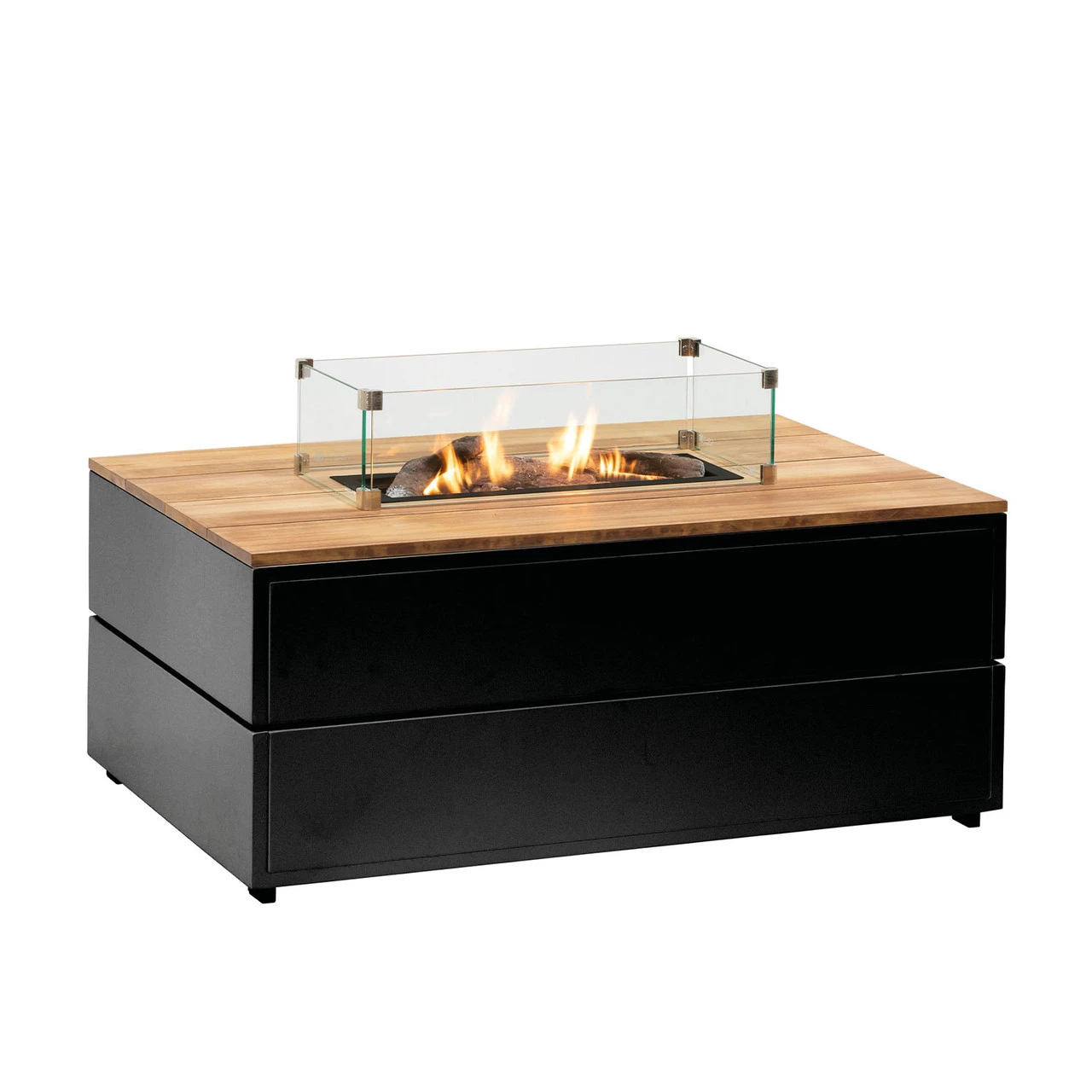 Cosipure 120 Rectangular Fire Pit Black and Teak With Glass