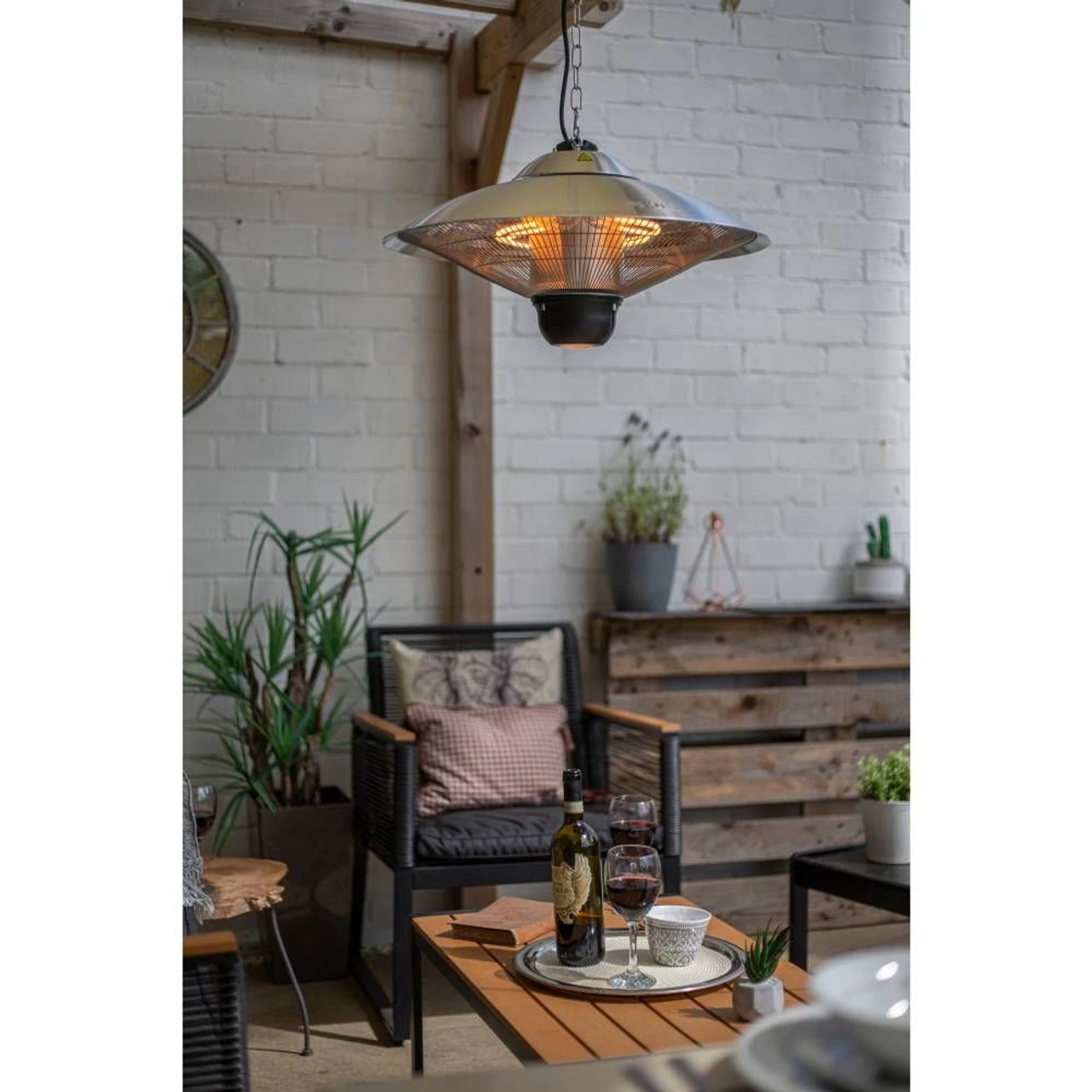 Ideal if you have a pergola or gazebo, this Hanging Heater can be attached from a rafter and efficiently heat the people below. With its attractive silver finish, built-in LED light and remote control operation, this heater offers great value for money.