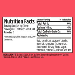 Ingredients: Sea Salt, garlic, sugar, black pepper, chili powder, onion, activated charcoal.